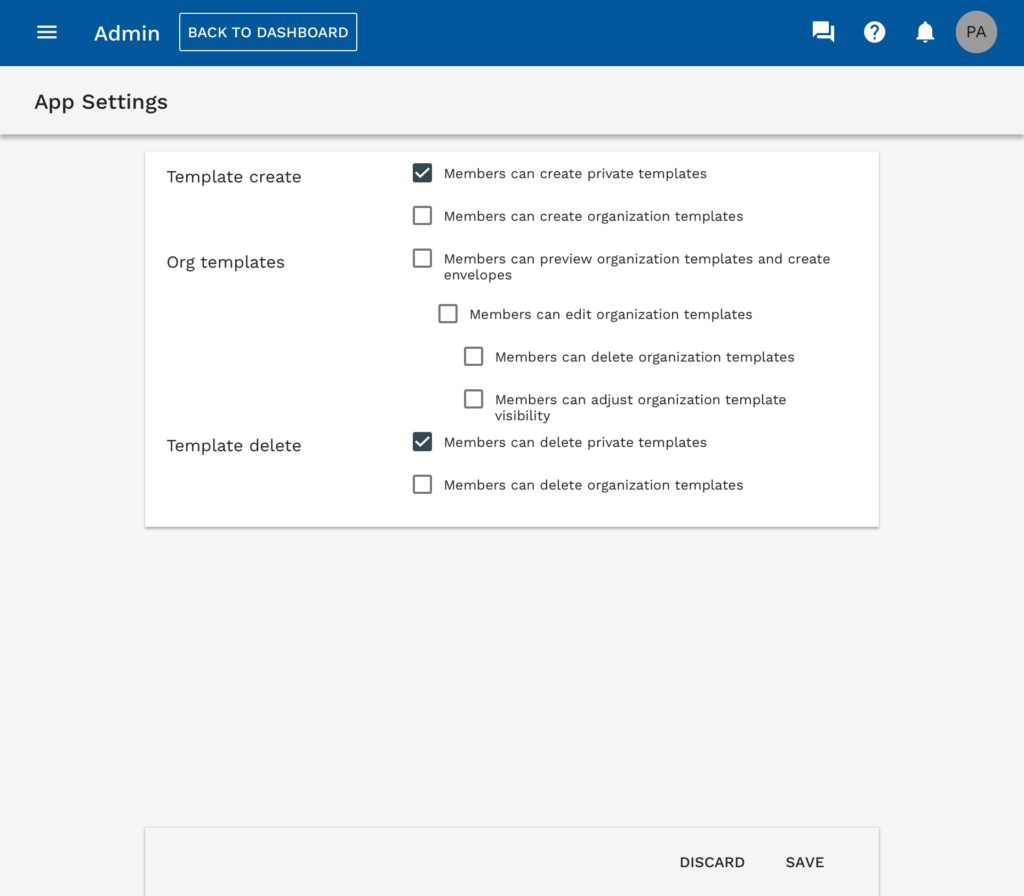 In this release, organizations administrators can customize their organization’s base member privileges. A key benefit of this feature is the light weight maintenance required for administrators to manage access to shared documents for usage across an organization.