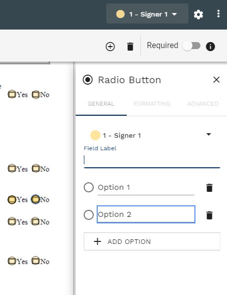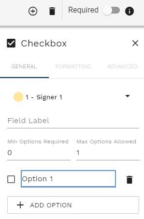 Checkbox allows the recipient to select one or more options. You can define the minimum required options and/or a maximum number of options to be selected based on the document’s needs.